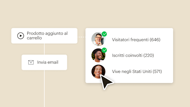 - Integrazioni vendute separatamente. La disponibilità di caratteristiche e funzionalità varia in base al tipo di piano. Alcune delle funzionalità descritte dipendono dall'integrazione e/o da un piano a pagamento. Per maggiori dettagli, consulta i piani e i prezzi di Mailchimp.