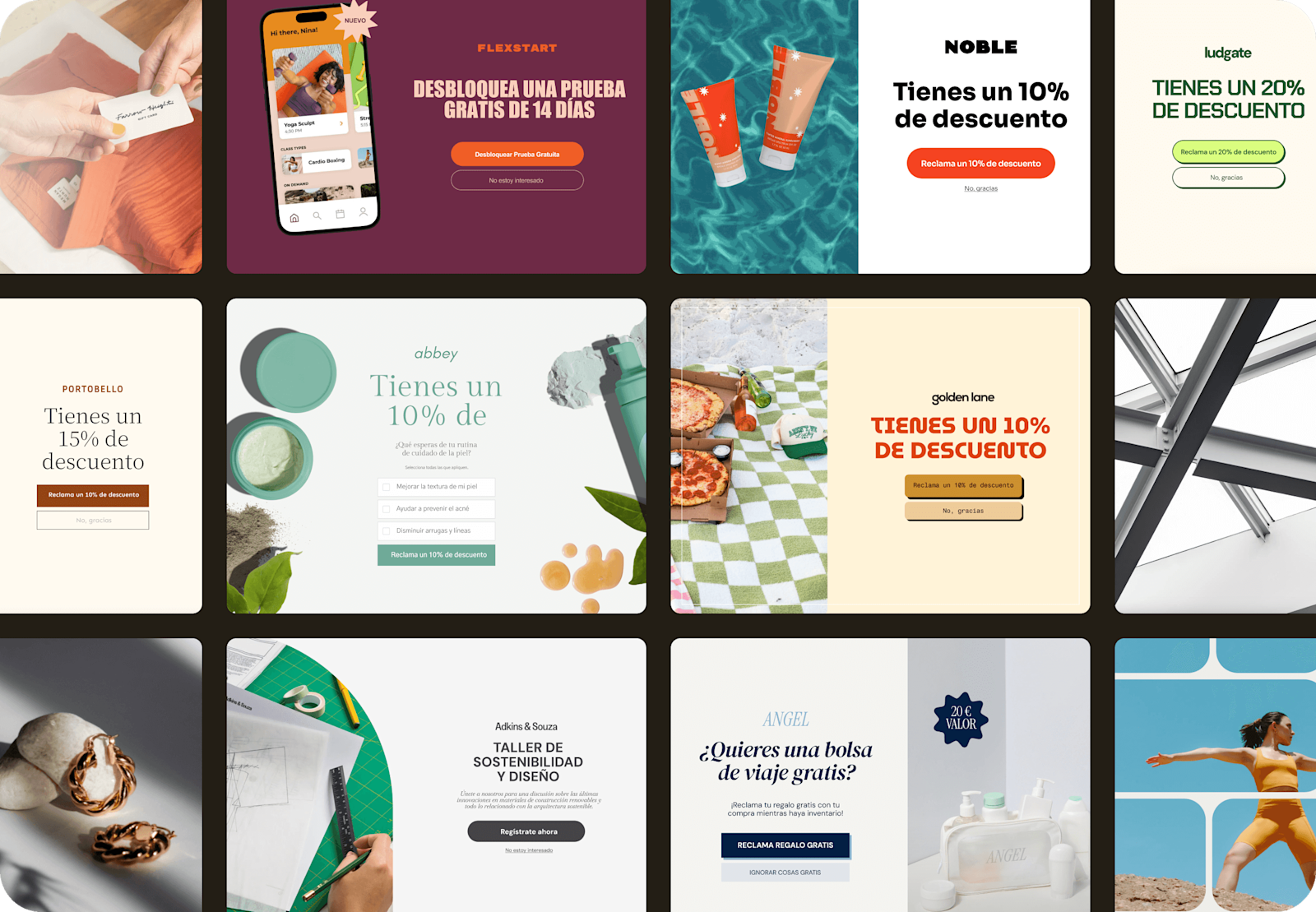 Impulsa la interacción y recopila más datos de clientes con formularios emergentes de plantilla para boletines, eventos, consultas y más.